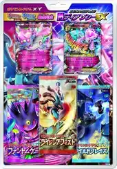 Available from December 13, 2013 exclusively in Pokémon Centers and stores such as 7-Eleven and Ito-Yokado, the Xerneas Mini File Set (Japanese: セブン&アイ•ポケモンセンター限定 ミニファイルセット ゼルネアス Seven & I•Pokémon Center Limited Mini File Set: Xerneas) is a special set that contains two Collection X booster packs and a Xerneas-themed mini card file with enough space to store 72 cards.