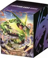 Deck case: The only product of this type available from this date was the Mega Rayquaza Deck Case (Japanese: デッキケース メガレックウザ), which features the same Ryota Murayama artwork of Mega Rayquaza as that used on Emerald Break booster packs. Each deck case can store up to 180 unsleeved cards (or 90 cards in sleeves) and include 2 card dividers to aid in organization.