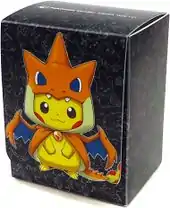 - The Pokémon Center Mega Tokyo's Pikachu Deck Case (Japanese: デッキケース ポケモンセンターメガトウキョーのピカチュウ) features Pikachu clad in a Mega Charizard poncho as designed by Kouki Saitou. The front features a smiling Pikachu while the reverse features a determined Pikachu. The reverse image was also featured on a promotional card available during the first phase of opening celebrations.