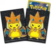 - The Pokémon Center Mega Tokyo's Pikachu Sleeves (Japanese: デッキシールド ポケモンセンターメガトウキョーのピカチュウ Deck Shield: Pokémon Center Mega Tokyo's Pikachu) feature a determined Pikachu wearing a Mega Charizard poncho. The background includes white outlines of Pikachu being mischievous.