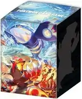 Deck case: The Hoopa Unbound Deck Case (Japanese: デッキケース ときはなたれしフーパ Deck Case Released Hoopa) features a Ryota Murayama illustration that includes the Mythical Djinn Pokémon Hoopa as well as Shiny versions of Primal Groudon, Primal Kyogre, and Mega Rayquaza, all of which were included in the recent Bandit Ring expansion. Each deck case can store up to 180 cards and come with 2 card dividers.