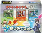 Similarly to the BW Era, the XY Beginning Set (Japanese: はじめてセット) marks the first major piece of merchandise released for the XY Era. Available on November 8, 2013, the set features three half decks that focus on the Kalos starter Pokémon Chespin, Fennekin, and Froakie, with their final evolutions included as Holofoil cards. The set continues the trend of previous introductory sets by including helpful items such as how-to-play instructions, a player's guide, and how-to-play DVD. Also packaged are game requisites, which include damage counters, a coin, and play mat. A damage counter bag is supplied as well.