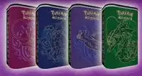 The tins released on October 7, 2015 are known as the Powers Beyond Tins. The three tins featured alternate artwork reprints of Latios-EX and Rayquaza-EX from the Roaring Skies expansion and Hoopa-EX from Ancient Origins. Each tin contained 4 booster packs from recent expansions, and a code card for the online card game unlocking a full 60-card deck.