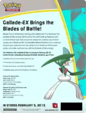 For the initial release of the expansion and Blister Packs, the Gyarados and Gallade Three Pack Blisters were not available in North America and were only available internationally. It wasn't until their inclusion on PokémonCenter.com in August 2014 that prompted their distribution to the North American market.