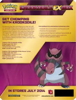 Released April 1, 2014 was the Garchomp-EX Box. This promotional box contained the promotional Garchomp-EX card, as both a standard sized and Jumbo Promotional card, in additional to four booster packs: 3 from the XY expansion, and 1 from the Black & White Series.