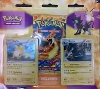 Upon first release, all the coins included within the Blister Packs were repackaged coins primarily from Noble Victories to Dark Explorers related merchandise. Included within shipments of later packages, however, were new coins exclusive to these Blister Packs. Included in the shipment of Garchomp-EX Boxes were Single Pack Blisters containing newer large-sized coins. A limited release of Black-backed versions of the Xerneas and Yveltal coins included in the XY Theme Decks were distributed exclusively to Target stores, while a large-sized Black-backed Pikachu coin was distributed to every store that sells these Blister Packs (including Target). The Two Pack Blisters also received an additional shipment, included this time with the Flashfire expansion products, that included a Large-sized, Silver Cracked Ice Holofoil, Black-backed Deoxys Coin within the Kanto starter evolution Blister Pack and a Large-sized, Silver Cracked Ice Holofoil, Black-backed Genesect Coin within the Dragon-type Blister Pack.
