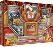 Made available starting June 17, 2015 was the Mega Rayquaza Collection. The Mega Rayquaza Collection contains an exclusive Rayquaza promotional card, a figure of Mega Rayquaza, a code card for the TCGO, and four booster packs from XY Series expansions. The promotional card is the Rayquaza from the Japanese Illust Collection. It was only available in North America, with the Rayquaza Box taking its place in Europe.