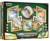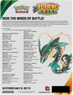 Much like many of the previous promotional boxes of the XY Series, the Rayquaza Box, released June 25, 2015, introduced an exclusive promotional Jumbo card featuring the Sky High Pokémon Rayquaza. Containing three booster packs (one from Roaring Skies, Primal Clash, and Phantom Forces each), the Rayquaza Box pairs with the Mega Rayquaza Collection, containing the same exclusive Rayquaza promo, but as both a regular card and a jumbo, and a code card for the TCGO. It was only available in Europe as a substitute for the North American figure promotional box.