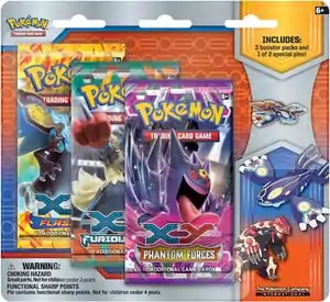 Continuing a trend started early in the XY Series are the XY Three Pack Pin Blisters released on February 19, 2014. Featured in each Blister Pack will be an exclusive pin featuring either Xerneas or Yveltal, in addition to three booster packs from the XY expansion.