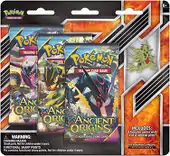 Released one week after the expansion on August 19, the Ancient Origins Collector's Pin Three Pack Blisters included either Mega Tyranitar or Shiny Mega Rayquaza. Each Blister also came with 3 booster packs from the expansion.