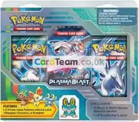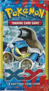 In addition to the XY Theme Decks, alongside the expansion on February 5, 2014, six different XY Blisters made their way to store shelves. The six different Blisters include pairs of Single Pack Blisters, Two Pack Blisters, and Three Pack Blisters, each featuring exclusive Cosmos Holofoil promotional cards and coin. The two Single Pack Blisters each feature one booster pack as well as a Cosmos Holofoil print of either Dragon Vault Salamence or Plasma Freeze Dragonite. The Two Pack Blisters, much like the Black & White Two Pack Blisters, each feature a trio of exclusive Cosmos Holofoil promotional cards. The first features Dark Explorers Venusaur, Boundaries Crossed Charizard, and Plasma Blast Blastoise, while the second features Dragon Vault Dragonite, and Dragons Exalted Garchomp and Hydreigon. The two Three Pack Blisters feature Cosmos Holofoil prints of either Dragons Exalted Gyarados or Plasma Storm Gallade. The print of Blastoise erroneously lists the copyright as ©2012, even though the Plasma Blast expansion was released in 2013 and the Blister Packs in 2014. This was corrected when the 6 promotional cards were printed again eight months later in the XY Knock Out Collection.