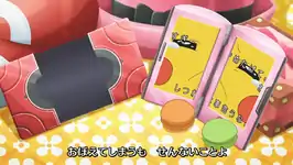 Pikachu is displayed in Ash's Pokédex. Throughout the ending, he makes different facial expressions. During this, Poké Puffs roll along, followed by a few flying ones. Then, Pikachu moves over to Serena's Pokédex. Dedenne briefly appears from a flying Poké Puff he was holding on to. Pikachu goes back to Ash's Pokédex to observe the floating pink Poké Puff. It lands on the middle between the green and orange Poké Puffs.