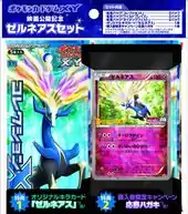 Commemorating the release of Diancie and the Cocoon of Destruction in cinemas on July 19, 2014, 4 special packs were made available from the same day, each focusing on 1 of 3 Pokémon with major movie roles. The first item was the Xerneas Movie Commemoration Set (Japanese: 映画公開記念 ゼルネアスセット), which includes a Cracked Ice Reverse Holofoil promotional card of the Life Pokémon Xerneas, as well as 2 Collection X booster packs, 2 Wild Blaze booster packs, and 2 Rising Fist booster packs. An application postcard for a prize lottery was also included, in which a set of 500 winners would win a booster box of the upcoming Phantom Gate expansion, and another set of 500 winners would win an upcoming Hyper Metal Chain Deck.