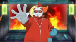 In Down to the Fiery Finish!, he used Team Flare's Mega Evolution energy weapon to take control of Z2, causing it to unleash massive roots thorugh Lumiose City. During the crisis, Xerosic remained in the Lumiose Gym, overseeing Team Flare's operation and operating the Mega Evolution energy weapon, and eventually succeeded in controlling Squishy as well.