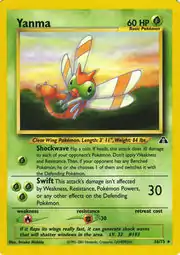 Yanma (Japanese: ヤンヤンマ Yanyanma) is a Grass-type Basic Pokémon card. It is part of the Neo Discovery expansion.