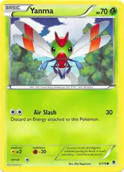 Yanma (Japanese: ヤンヤンマ Yanyanma) is a Grass-type Basic Pokémon card. It is part of the Phantom Forces expansion.
