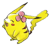 Chuchu (Japanese: チュチュ Chuchu), Yellow's Pikachu, was obtained by Yellow in between the Yellow Chapter and the GSC chapter. She has a courtship with Red's Pika, resulting in an Egg later given to Gold before it hatched, that later gave him his Pichu. As of A Well-Journeyed Jumpluff, she is level 31, has a Mild nature, and her Characteristic is "likes to run." | ||