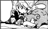| Slowpoke was borrowed from a Swimmer to enter in a Surfing contest for a chance to win a Dragonair and returned it before the battle with Lance.