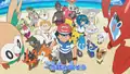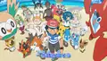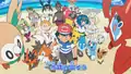 Ash sadly looks upon a Poké Ball at sunset, only for his classmates to appear and show that they are there to support him. Ash then happily runs towards them, causing Sophocles to fall over as he tries to dodge Ash. At the Pokémon School, Ash struggles to understand a book during a class, gives up and puts his head on the desk, and is nudged by Professor Kukui to get him to continue. At night, Ash and his Pokémon play together on a beach. At daytime, Ash lays down on a patch of grass with Pikachu, looking at a rainbow in the cloudy skies.