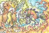 It is believed that this was not how the cards were distributed when the contest ended, however. A previously unmentioned publication, Shōnen Sunday, also ran a contest. None of the jumbo cards which were intended to be awarded to the 60 originally-mentioned runner-up contestants are known to have surfaced. Significantly fewer of these cards have appeared than that of the 2010 Pokémon Design Contest and it's speculated that each winner may have received between one and thirteen full sets of the winning designs instead of 100 of their own design.