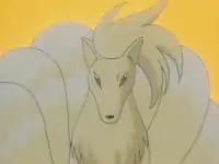 Team Rocket later captured it and the other contestants' Pokémon. Brock's Geodude was able to break down the door of the room the Pokémon were trapped in and get them free. Team Rocket noticed this however, and they sent out their Arbok and Victreebel. Ninetales then teamed up with Vulpix, and together they sent Team Rocket blasting off. Ninetales's known moves are Flamethrower and Fire Spin. | ||