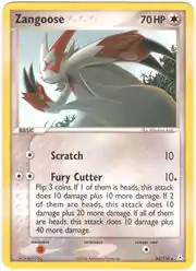 Zangoose (Japanese: ザングース Zangoose) is a Colorless-type Basic Pokémon card. It is part of the EX Holon Phantoms expansion.
