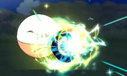 | Nosepass's nose glows yellow and it fires a massive blast of yellow electricity from it at the opponent; or, a yellow orb of electricity with a red center appears in front of Nosepass's nose and it fires the orb at the opponent. | |||