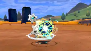 Vikavolt releases a yellow orb of electricity with a red center in front of its mouth and fires it at the opponent. This paralyzes the opponent on contact. | ||