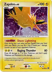 Zapdos (Japanese: サンダー Thunder) is a Lightning-type Basic Pokémon card. It is part of the Majestic Dawn expansion.