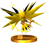 Zapdos appears in the background of the Prism Tower stage in the 3DS version of the game.