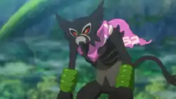 Zarude are social and live in packs. They're usually incredibly aggressive, and frighten most other Pokémon; excelling in battle with their sharp claws and quick wit. [1] However, Zarude occasionally exhibit a softer side. A caped Zarude named 'Dada' split from its pack to raise and nurture an orphaned human infant. It's said that this Zarude derived unique strength from its bond to the adopted human child.