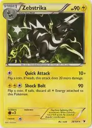 Zebstrika (Japanese: ゼブライカ Zebraika) is a Lightning-type Stage 1 Pokémon card. It was first released as part of the Noble Victories expansion.