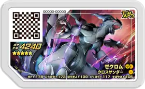 Zekrom (Japanese: ゼクロム Zekrom) is a Grade 5 Pokémon Ga-Olé disk. It is part of the third Dash set.