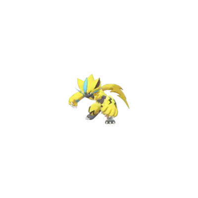 Zeraora lacks an electricity-generating organ, so it gathers and stores electricity from outside sources. This Pokémon can create a very powerful magnetic field through the strong electric currents emitted from its paw pads. Using this magnetic field allows it to levitate and move at high speeds while airborne. Zeraora can travel as fast as a lightning strike. Its fur is known to stand on end whenever it is using massive amounts of electricity.[1] Zeraora can tear its opponents apart with its high-voltage claws. Even if the opponent dodges, they still get electrocuted by the flying sparks. Lighting flashes and thunderclaps can occur when Zeraora starts running.