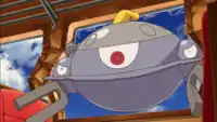 Zero attacked Shaymin in a town, where it had met up with Ash and his friends. He led his army of Magnemite and Magneton from a hoverboard in a bid to trap Shaymin, but the group managed to escape him aboard a train. The Magnemite and Magneton caught up with them, accompanied by Zero's Magnezone, and attacked the train. However, they were driven off when Shaymin changed into its Sky Forme and fought back. Meanwhile, Zero returned to the Megarig, where Infi informed him that Giratina was attempting to surface once again. That evening, when Giratina pulled the group into a portal from a ship, Zero and his Pokémon followed unnoticed.