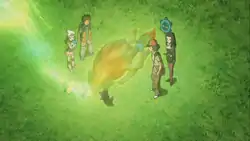 With the misunderstanding settled, Zoroark continues making her way towards the stadium, defeating Goone and his Pokémon along the way in a vengeful fury. Zoroark finally reaches the Pokémon Baccer World Cup Stadium, intent on saving her child and taking her revenge on Kodai. Before she can reach him, Kodai reveals he has recaptured Zorua and threatens to kill the child, electrocuting Zorua to prove his point. Seeing this, Zoroark has no choice but to stop and allow herself to be brutally assaulted by Kodai's Shuppet. However, when it seemed that Kodai finally absorbed the power of the Time Ripple, Zoroark smirks as he's horrified to find it was all an illusion she created. Zoroark's deception allowed Karl to catch Kodai gloating about his actions to Ash on camera.