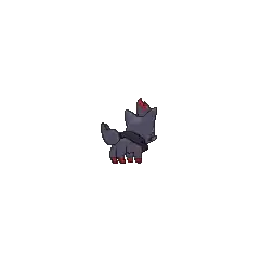 Zorua is said to have a timid nature which lead to the development of its illusion abilities, Zorua keeps its true form hidden to ensure its safety, and takes on the appearance of other Pokémon to frighten off enemies. Sometimes it will take the form of a silent child in order to search for food. It have been known to occasionally replace normally talkative children. As seen in its movie debut, the tail of an unpracticed Zorua may remain when it takes on a human form, and if the tail is touched, it will revert to its true form. Zorua is mischievous and loves to surprise others. Night Daze is its former signature move.