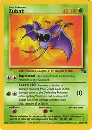 Zubat (Japanese: ズバット Zubat) is a Grass-type Basic Pokémon card. It is part of the Fossil expansion.