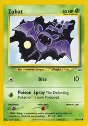 Zubat (Japanese: ズバット Zubat) is a Grass-type Basic Pokémon card. It is part of the Neo Revelation expansion.