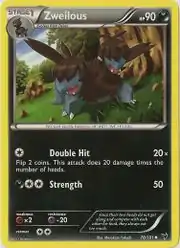Double Hit and Strength are both moves in the Pokémon games that Zweilous can learn. This card's Pokédex entry comes from Pokémon White.