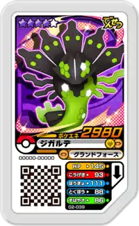 Zygarde (Japanese: ジガルデ Zygarde) is a Grade 4 Pokémon Ga-Olé disk. It is part of the second set.