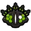 Zygarde 50% Forme has a serpentine body with green and black markings. Most of its back, head, and neck are black, while the underbelly and the tip of its tail are green. Its eyes are made of four green hexagons, similar to an insect with compound eyes, and there is a thin, white line down the center of its face. Across the back of its neck is a large frill made of five long, flat protrusions that each have two small, green hexagons on them. There are three short tendrils on either side of its chest; they are black on the right and green on the left. Its tail also ends in five tendrils. It has many small, green hexagon markings on its body capable of glowing. This form of Zygarde is thought to monitor those who destroy the ecosystem from deep with its cave. Should the region's ecosystem fall into disarray, it will appear and reveal its power.