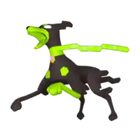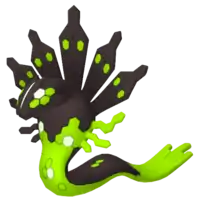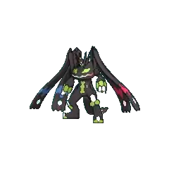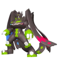 Possessing all of its total cells, Zygarde Complete Forme is said to exceed both Xerneas and Yveltal in power. The opening on its chest can radiate enough energy to destroy anything around it. This form only appears to neutralize threats to the ecosystems.