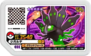 Zygarde (Japanese: ジガルデ Zygarde) is a Grade 4 Pokémon Ga-Olé disk. It is part of the first Ultra Legend set.