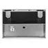Die Mitte der unteren Abdeckung wird von zwei Plastiknoppen am Gerät gehalten. Wenn die Schrauben gelöst sind, mit beiden Händen unter die Abdeckung greifen und nach oben gerade wegziehen.