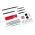 While pressing down on the tool, push the lower and upper cases apart to separate the retaining clips.