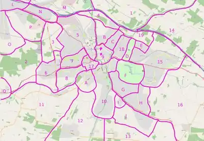 Add your name if you particularly want to do a particular area. I have prioritised the areas with the ones most needing work having letters and others that are more complete getting numbers. I have added the large park areas as priority areas as they probably have paths and other facilities that are not on the map. See also openstreetbugs.