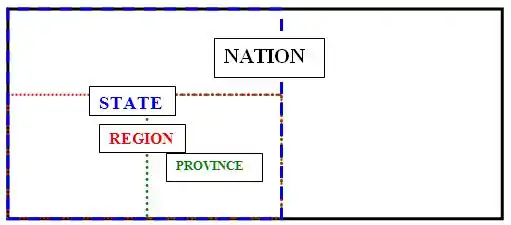 Currently, a maximum of 3 administrative levels (below country level) exists in AND’s Global Road Data. For the purpose of this document the most detailed level will be described as the ‘Province’, the level above this as the ‘Region’ and the one above this as the ‘State’ division.