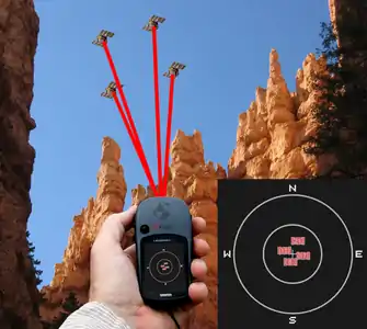 The accuracy of GNSS data depends on many factors. For example, the quality of the GNSS receiver, the position of the GNSS satellites at the time the data was recorded, the characteristics of the surroundings (buildings, tree cover, valleys, etc) and even the weather. This page gives a basic introduction as to how GNSS works and describes some of the key issues related to accuracy. How GNSS worksIn years past, the terms GNSS (Global Navigation Satellite System) and GPS (Global Positioning System) were essentially interchangeable in a discussion of "GPS accuracy". The United States GPS system was the first GNSS system available to consumers. In recent years, many additional GNSS systems have gone live globally (GLONASS, QZSS, Beidou, Galileo, and yet more others), and many devices can use multiple GNSS systems at the same time to improve coverage and accuracy. With that said, it's important in any modern discussion of accuracy of these devices to talk about overall GNSS accuracy. GPS(some of the pages that link to this page mean to link to this section specifically: special:whatlinkshere/accuracy_of_GPS_data) Global Positioning System (GPS) is a satellite navigation system that provides location information anywhere on or near the Earth's surface. It comprises a number of satellites in orbit above Earth. Each satellite continually transmits messages that include the time the message was transmitted, and the satellite position. On the ground the GPS unit receives these messages and, by comparing the time at which the message was received (on its internal clock) against the time which the message was transmitted, it works out how far away it is from each satellite. In order to calculate its location the GPS unit must receive messages (signals) from a minimum of four satellites. Consider the following: