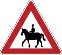 | hazard | horse_riders | An area where horse riders share a roadway with motor vehicles. | Approved taginfo | Horses | ![]() | ||